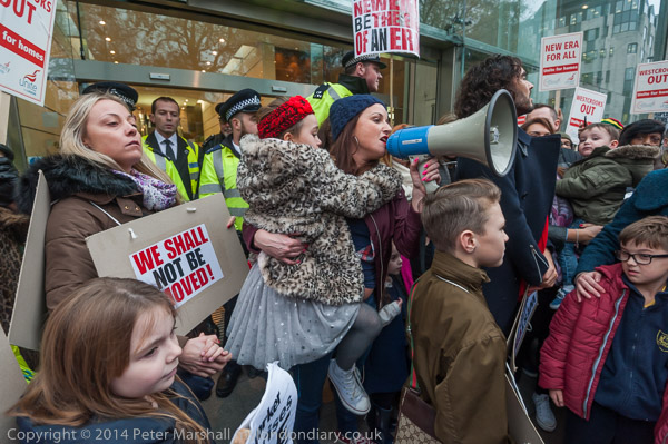 New Era tenants carry boxes containing the petition with 293,366 signatures