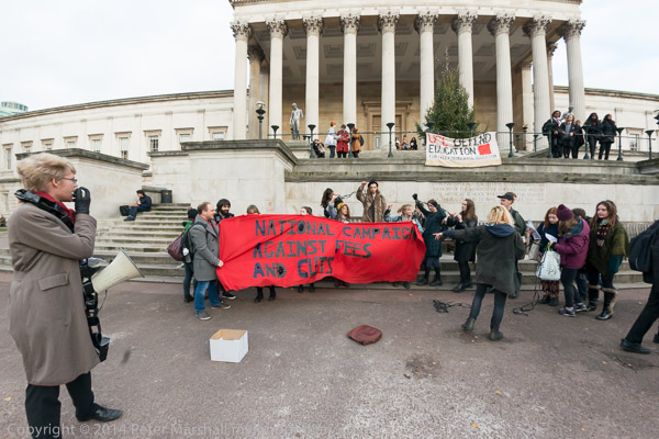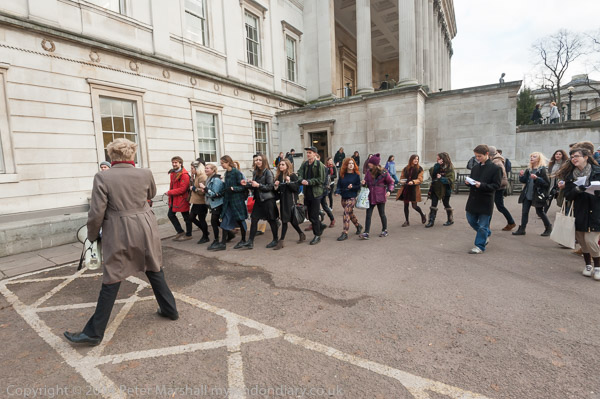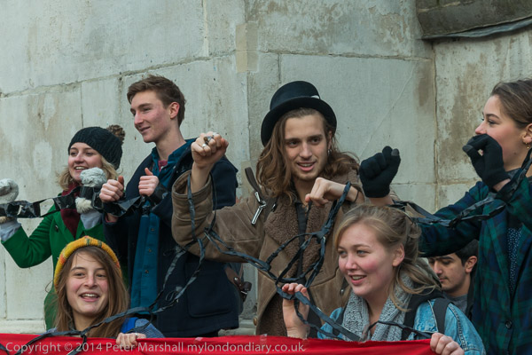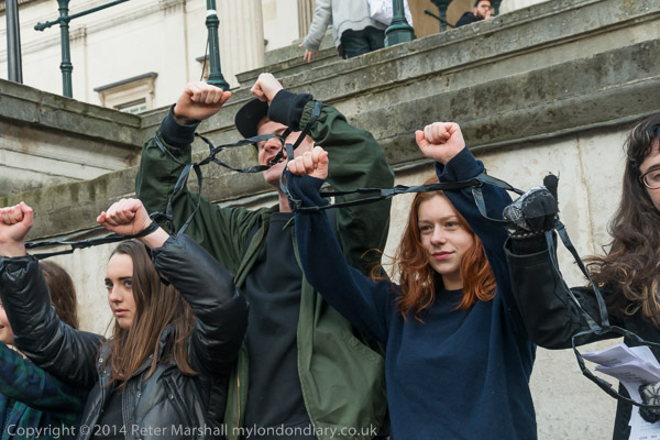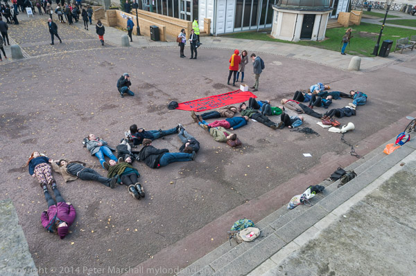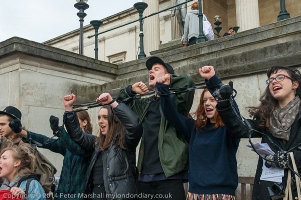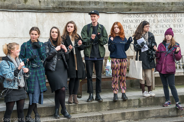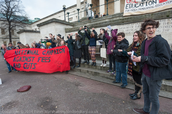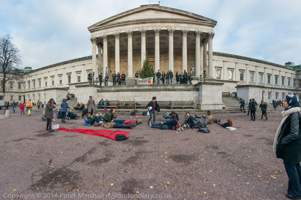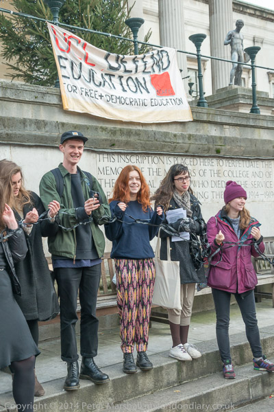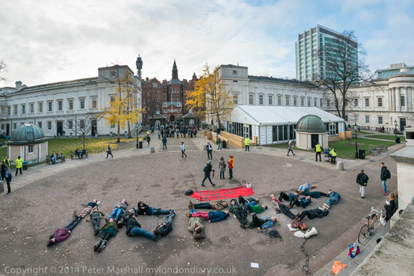 The Student bodies spell out the message 'NO FEES' in UCL's Main Quad