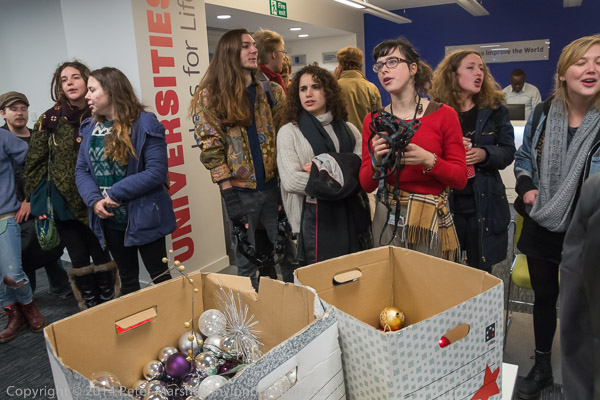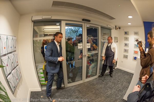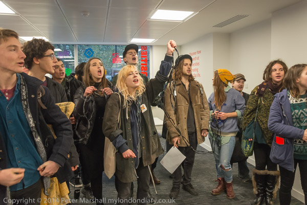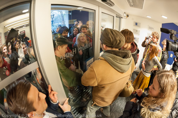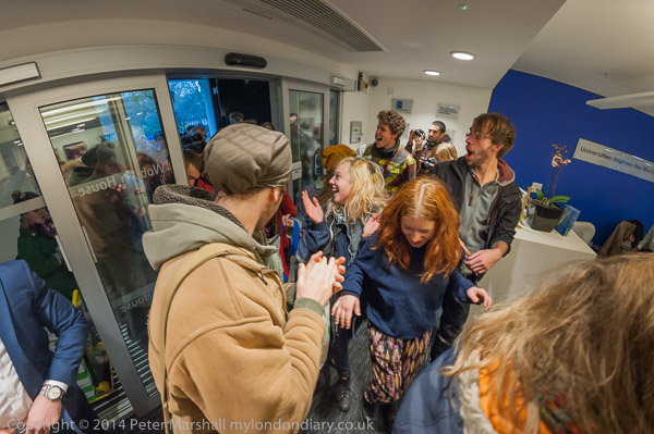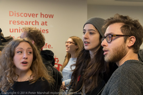 before going back to the discussion. Then there is more noice,as the UCL students try to get in through the main door