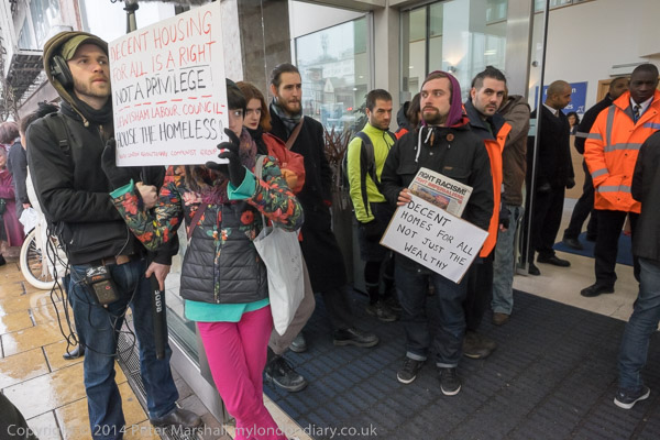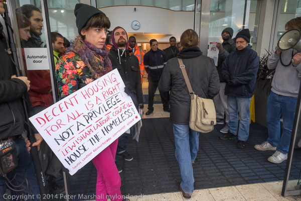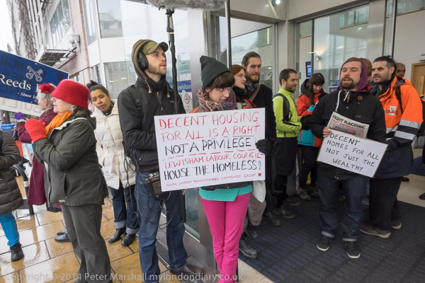 'Decent Housing for all is a right not a privilege! Lewisham Labour Council - House the Homeless!'
