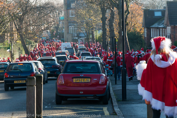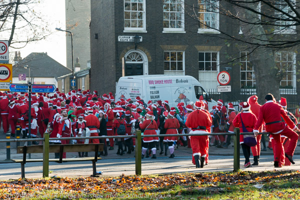 though I was surprised at how many Santas there were. I saw them in the distance and ran to the road when