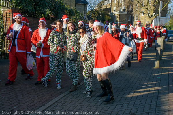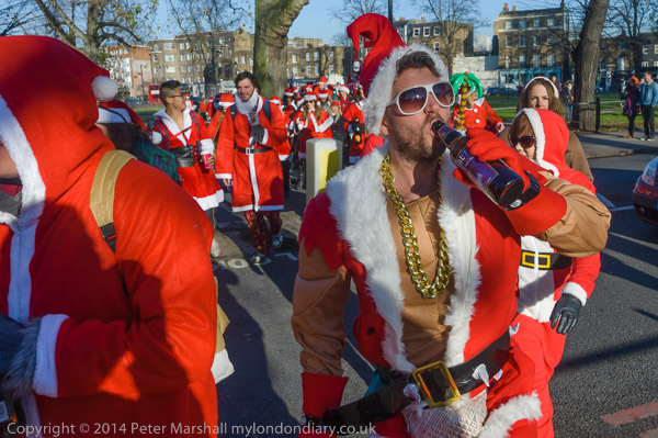 I was on my way to an education march, but had seen that one of the Santacon routes was starting from here