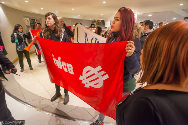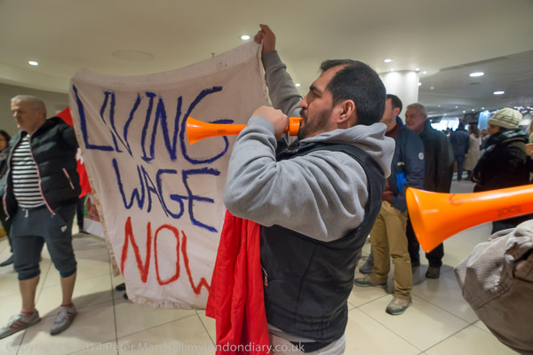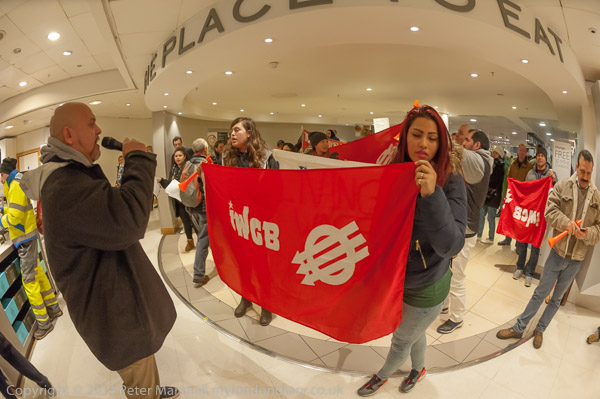 Cleaners Xmas Protest in John LewisJohn Lewis, Oxford St. Sat 13 Dec 2014 |