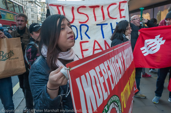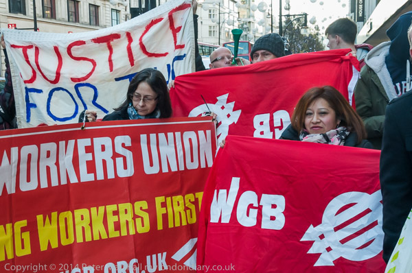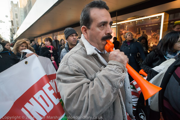 Cleaners Xmas Protest in John LewisJohn Lewis, Oxford St. Sat 13 Dec 2014 |