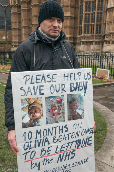 Olivia Stanca's father was protesting opposite Parliament. Olivia was born in February 2014 with a kidney cancer but otherwise healthy