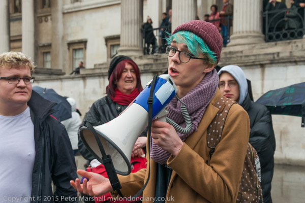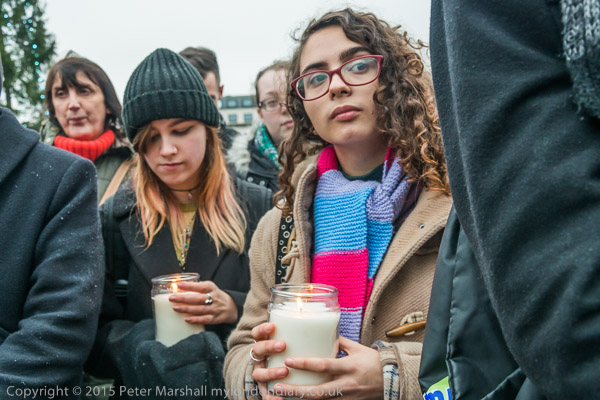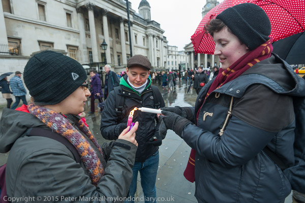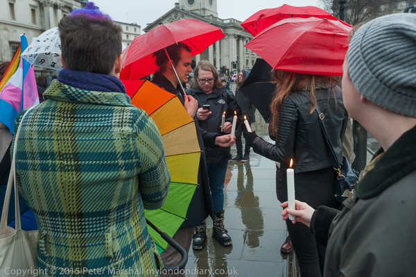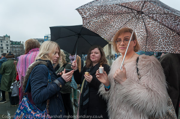 It was raining a little as people gathered for the vigil in Trafalgar Square, which had been arranged at short notice