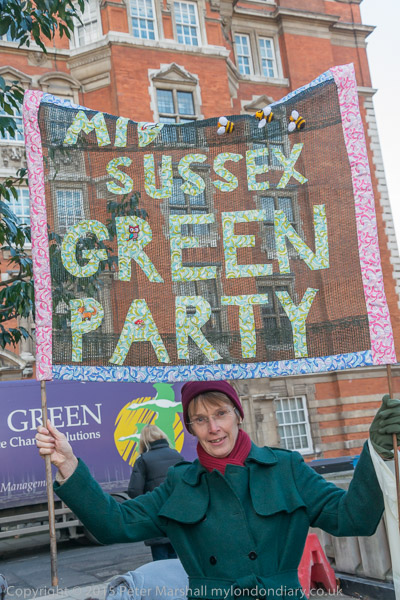 ![]() A woman holds a message for MP Justine Greening, telling her tobin the infrasturcture bill ![]() ![]() ![]() A very Green Man ![]() ![]() 'Feel the Surge' ![]() |
