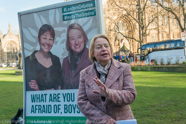 ![]() Natalie Bennett speaks in front of the poster of her and Caroline Lucas with the message 'What Are You Afraid of, Boys? ![]() ![]() ![]() ![]() ![]() ![]() ![]() ![]() ![]() |