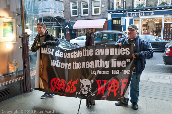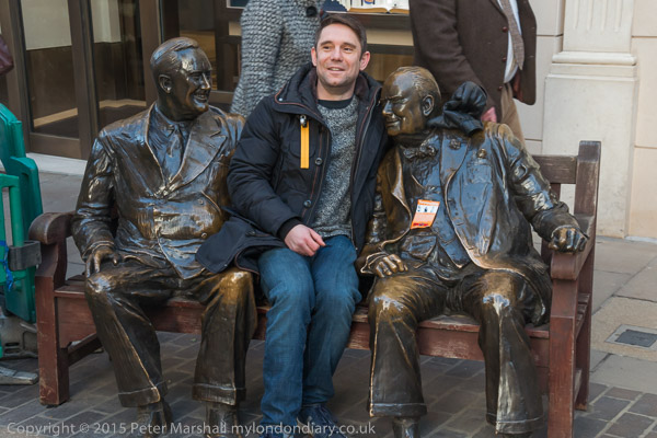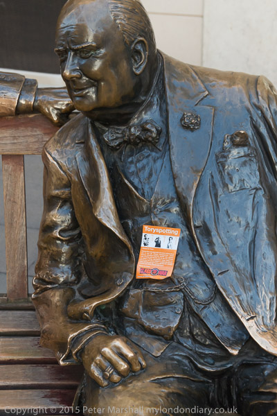 It seemed a fairly aimless wander, Stan took a seat with Churchill (who is wearing a Clas War 'Spot the Tory' sticker)