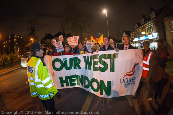 The OUr West Hendon march gets close to Hendon Town Hall