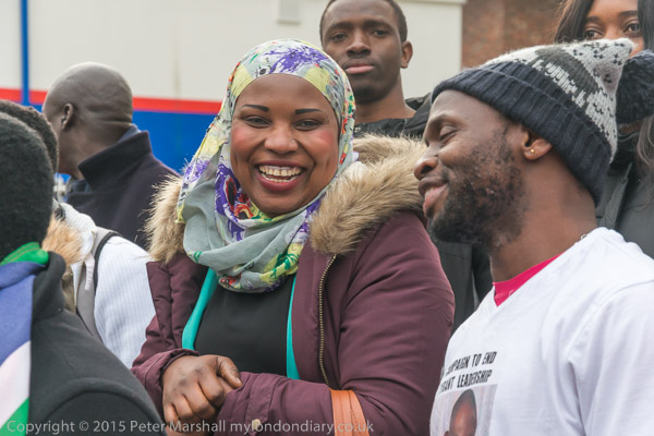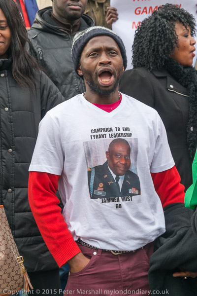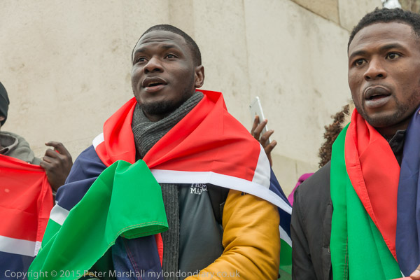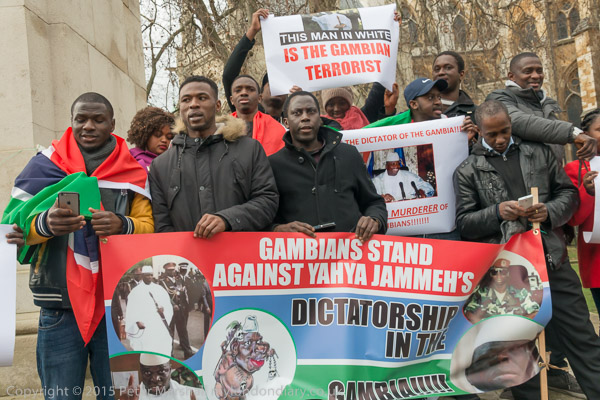 The banner against the Gambian dictator Yahya Jammeh and posters saying he murdered our people