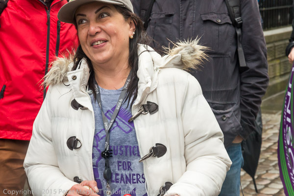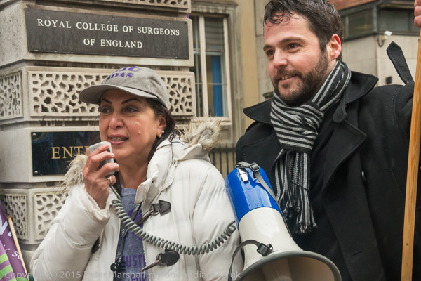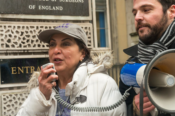She stands in front of one of the gates to the Royal College of Surgeons of England