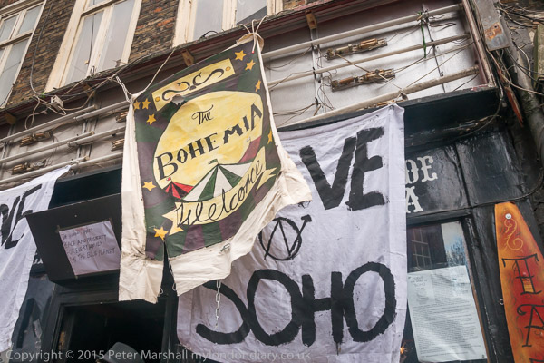 The occupiers who use the hashtag #Bohemians4Soho want support for a party in the street outside to oppose