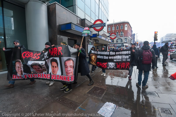 Class War had come to near the front of the march and swung away from it at Whitechapel High St to protest