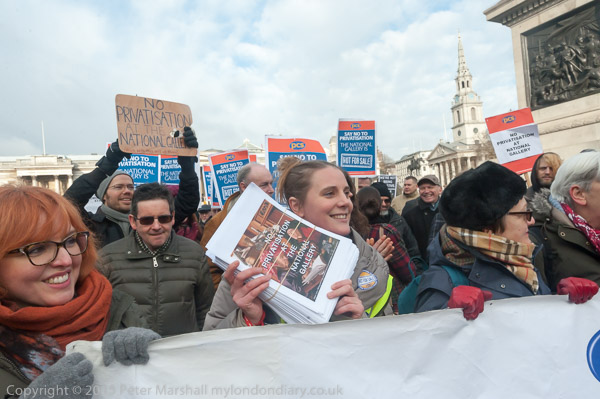 Trafalgar Square and DCMS, Whitehall, London. Thur 5 Feb 2015