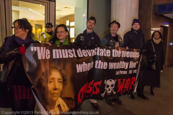 The Lucy Parsons banner "We must devastate the avenues where the wealthy live"