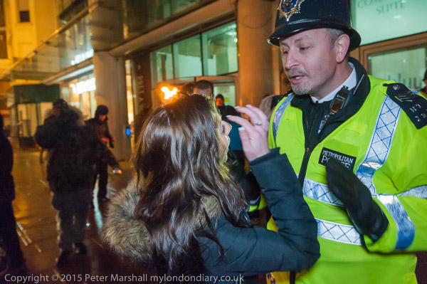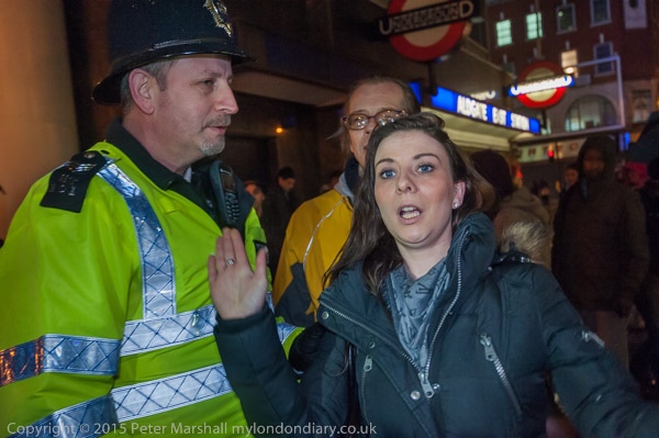 worked in an estate agents. She got a little shouty when police told her that people had a right to protest