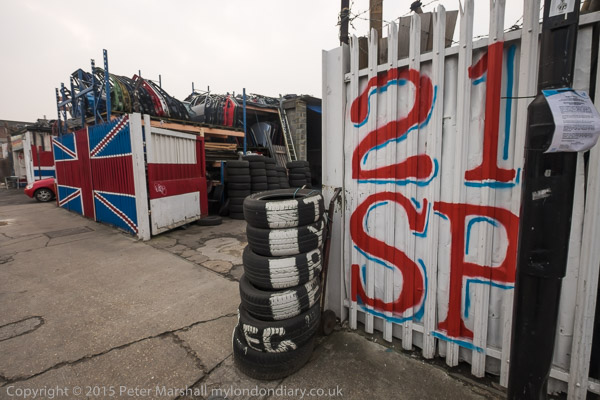 I'd walked past it earlier and assumed like some other areas of waste ground that it was a bombsite, but then became aware that ribbons and other tokens were being tied to the railings. Later I read about the site in various places