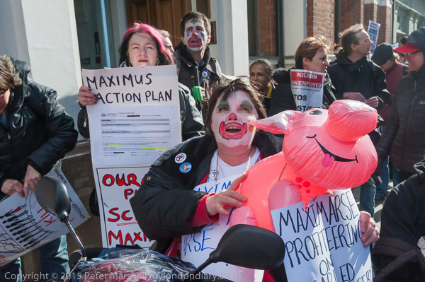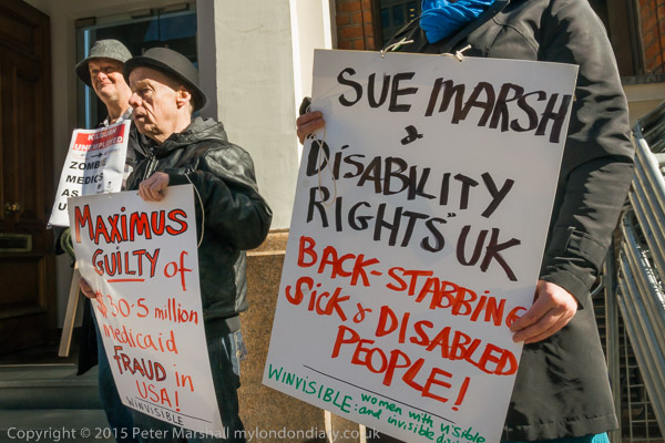 Kilburn Unemployed at the doorway to Maximus in Queen Anne's gate