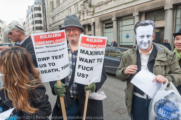and Kilburn Unemployed Worker’s Group Choir wearing David Cameron masks sing their 'David Cameron is a W******'.