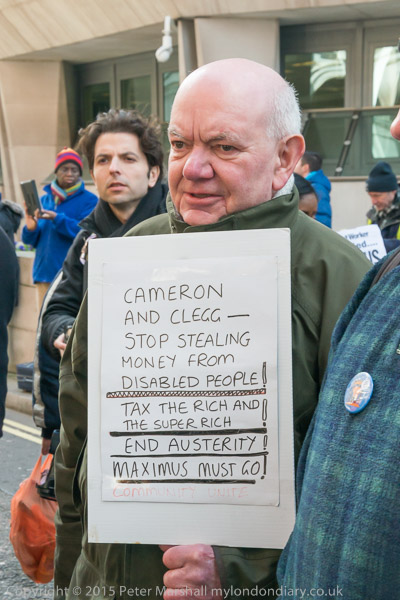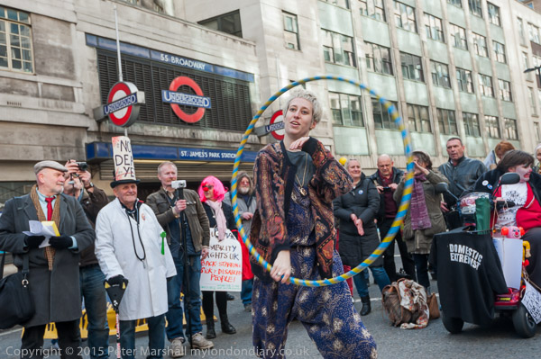 Unite Community members from Ealing support the protest, which has now moved down to the 'Circus Ring' on Petty France