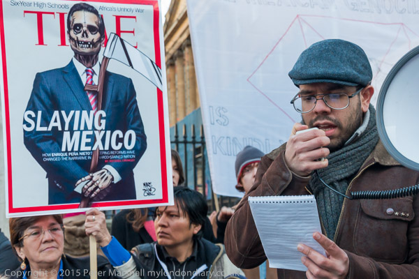 The protesters hold Mexican President Peña Nieto responsible for 'Slaying Mexico' - well over 100,000 killings