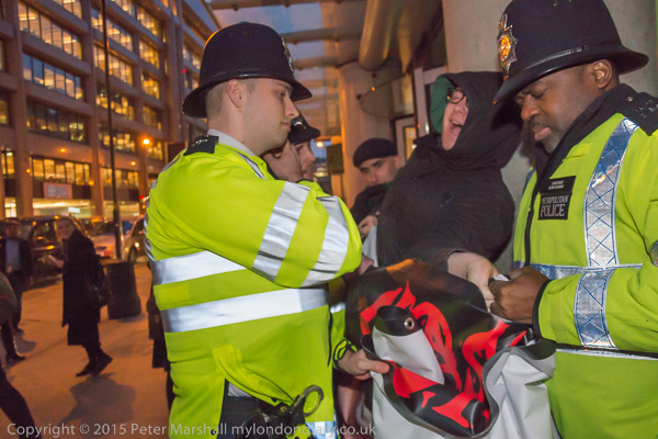 And the police grab hold of the banner, trying to pull it out of the hands of those holding it