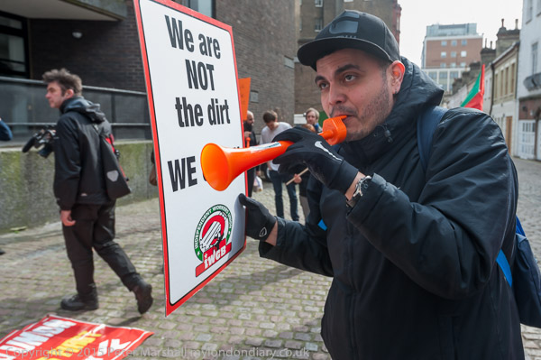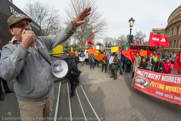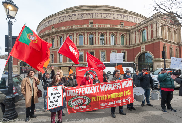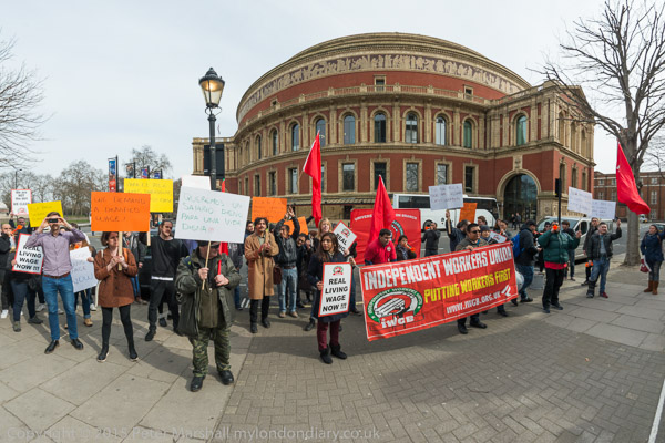 The protestes marched around th the east side of the building, facing the Albert Hall
