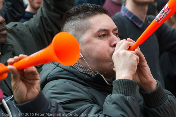 It sounded even louder when everyone had marched around to an almost enclosed yard at the rear of the building