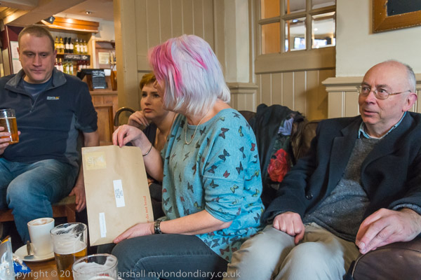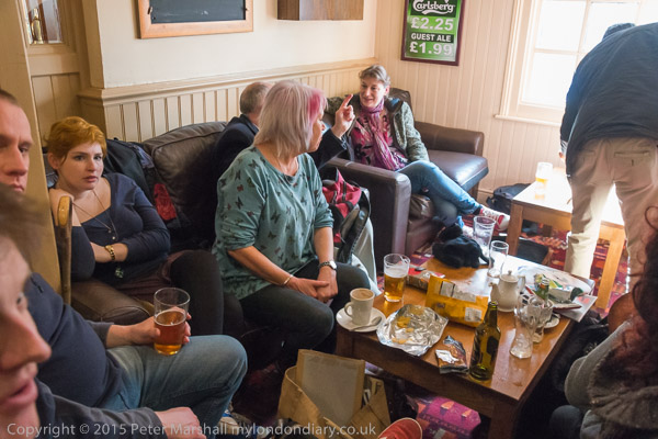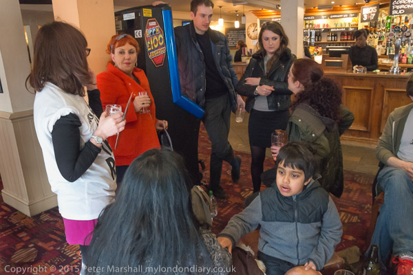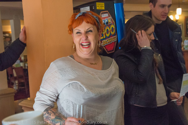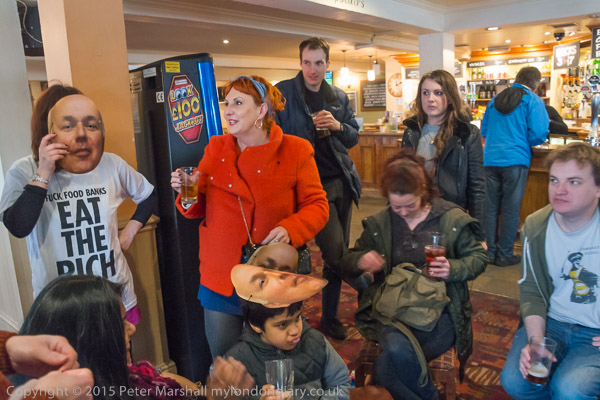 People drink a toast to  Class War candidate for Chingford & Woodford Green Lisa McKenzie