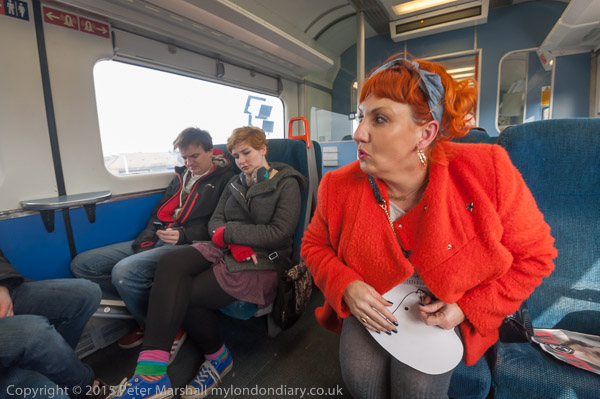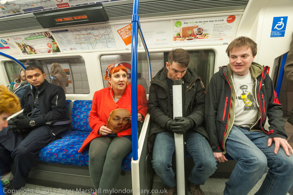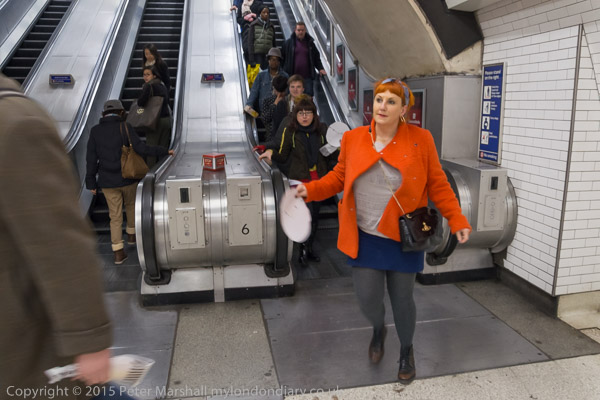 ![]() ![]() Lisa McKenzie with an IDS mask in her lap ![]() Lisa McKenzie at the bottom of the escalator ![]() and Lisa McKenzie onthe Tube ![]() ![]() We change trains at Bank ![]() ![]() ![]() and take the Northern Line to the Elephant |