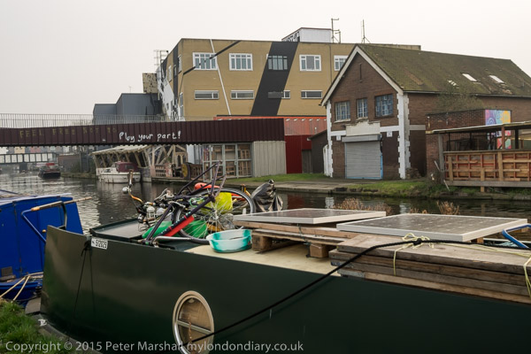 Play Your Part and the boathouse of the Eton Manor Rowing Club at Hackney Wick