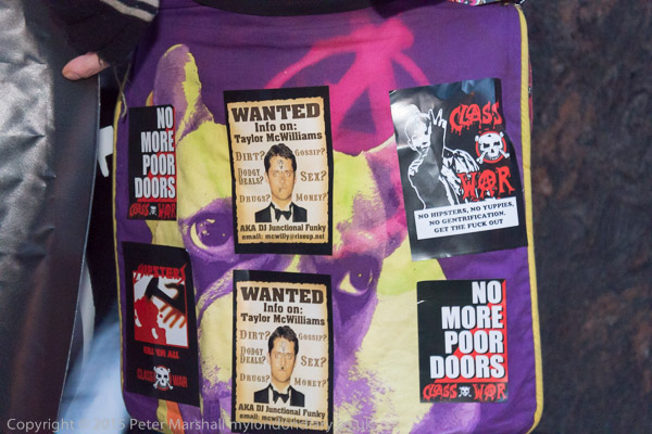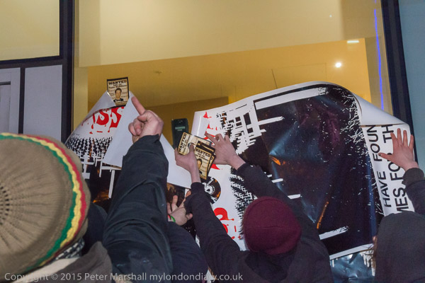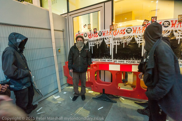 Barriers from the building works now block the rich door, with posters stuck up with stickers