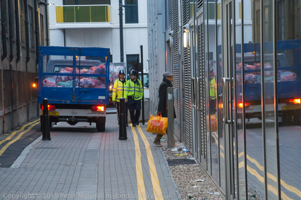 And a resident goes in the poor door as police arrive to check what Ian Bone and I have been doing