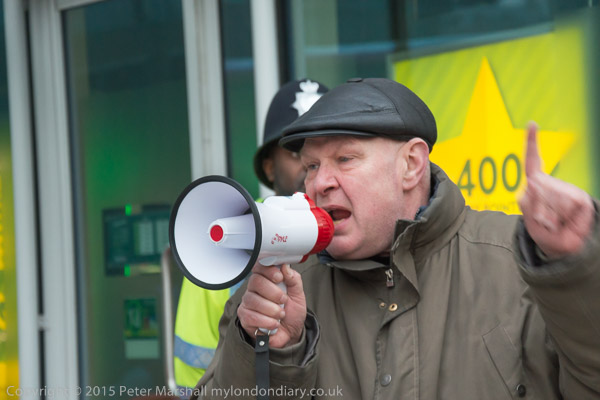 Ian Bone talks angrily to the officer in charge, who replys angrily, refuses to talk any more and walks away