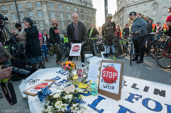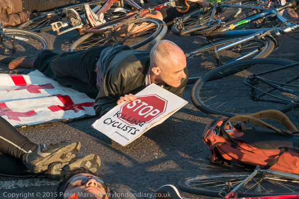 Donnachadh McCarthy gets up to announce an end to the die-in