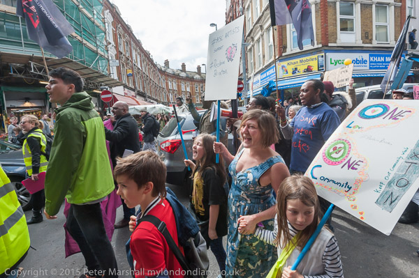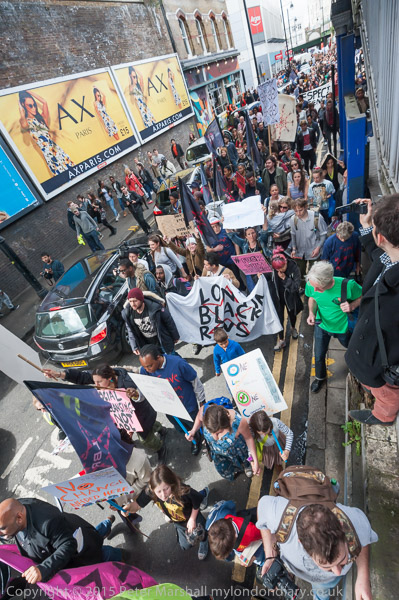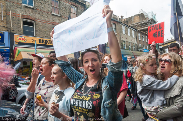 The protest march returned to Windrush Square and the Reclaim Brixton rally there
