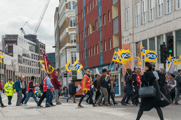 Clerkenwell to Trafalgar Sq, London. Fri 1 May 2015