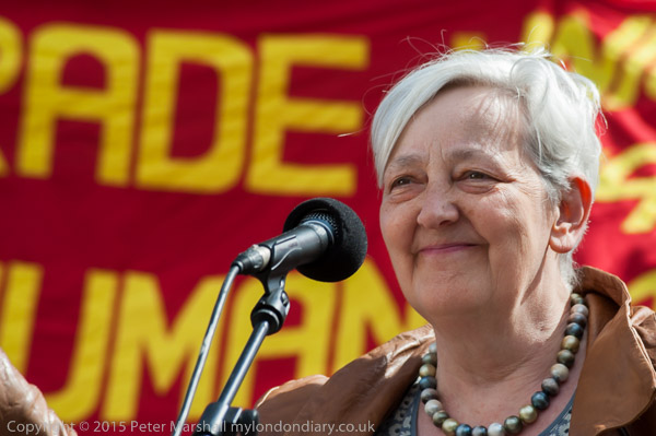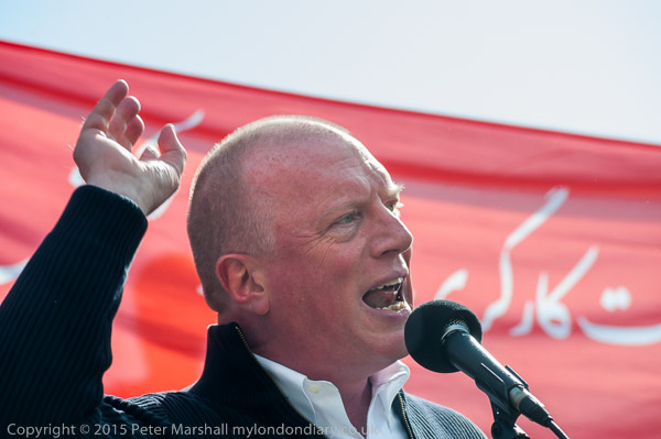 Steve Hedley of the RMT (In black RMT t-shirt) waits to speak. The rally was continuing as I left