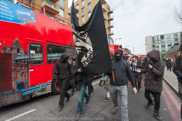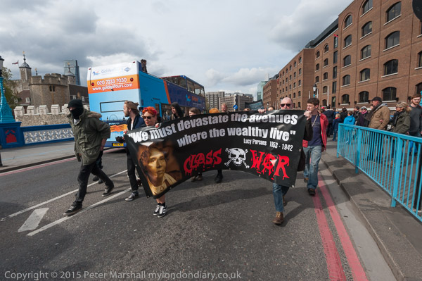 Class War and other anarchists had gathered close to the north end of Tower Bridge and marched down the approach road
