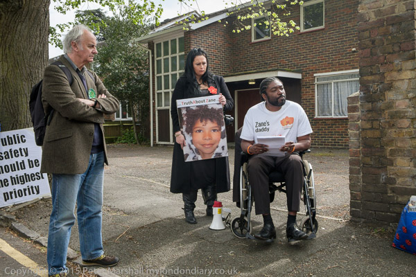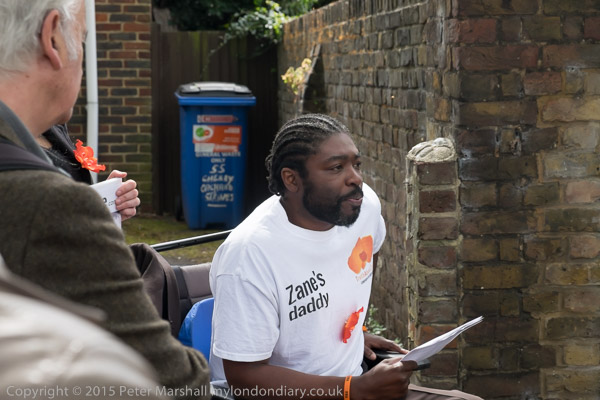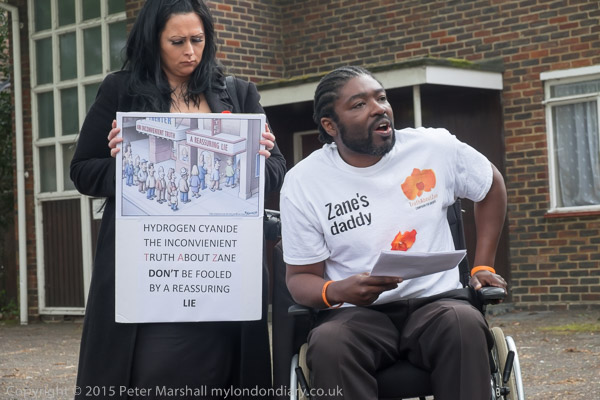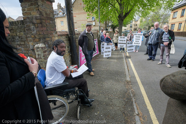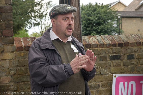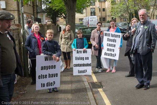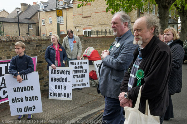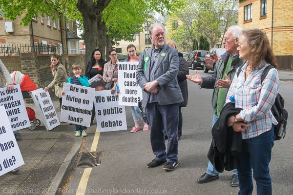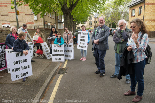 Actress Elizabeth Mansfield, Green Party local election candidate for Riverside & Laleham (At extreme right) speaks