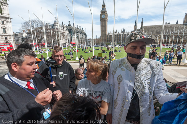 A heritage warden protests to some of those picnicing at the protest - I think about incense sticks burning in the flower beds