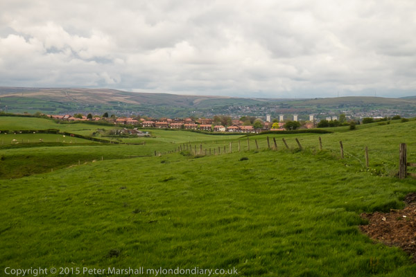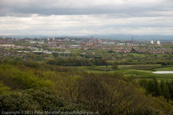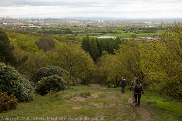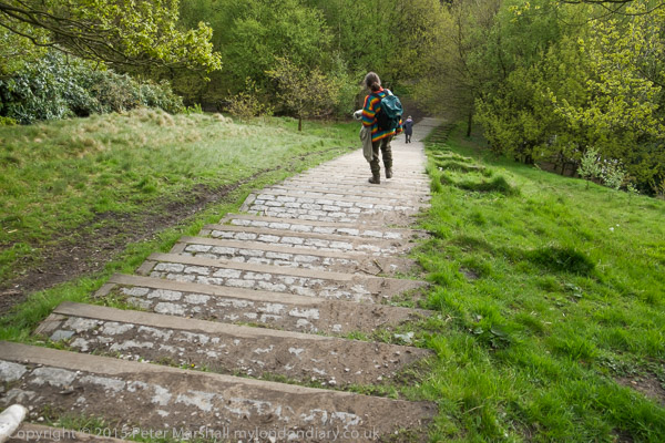![]() and climbed up a path into Tandle Hill Country Park ![]() ![]() There were extensive but not too interesting views from the Summit ![]() I think towards Middleton ![]() A steep path down ![]() and some steps make it easier ![]() ![]() |