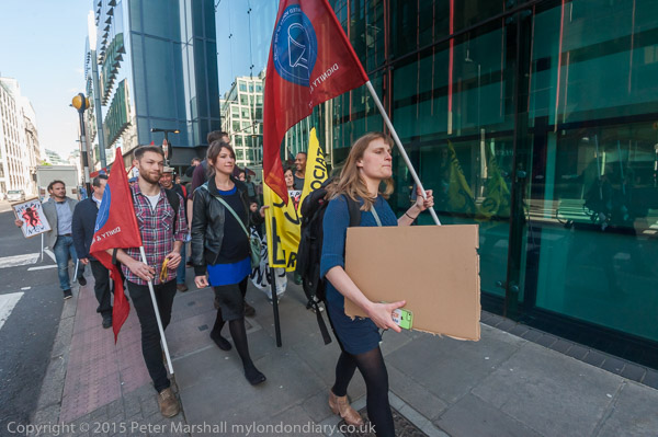 The protesters walk through the city to meet other supporters a short distance from the Barbican