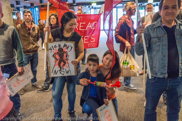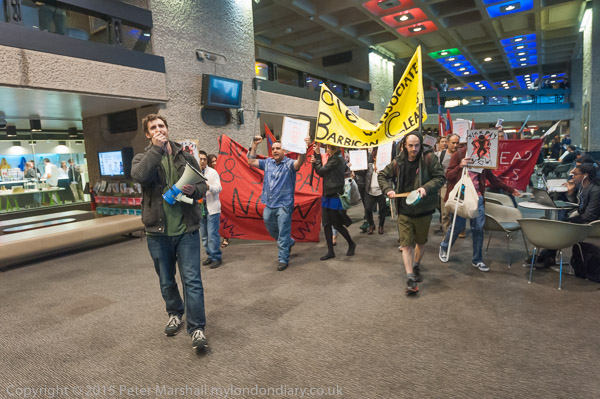When the protesters are aware that the police are on their way, they go for a walk around the centre to let all the users see what is happening