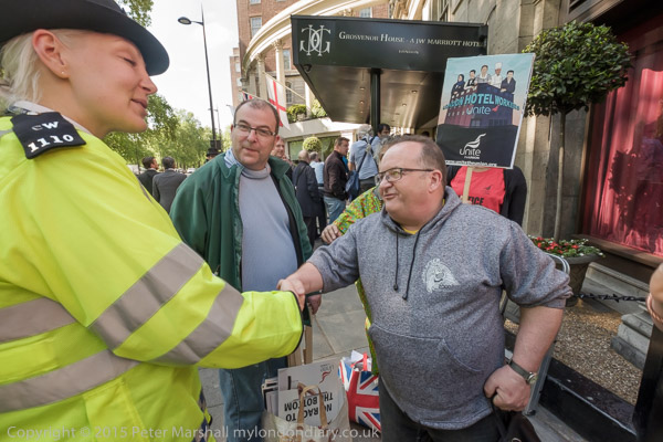 Getting ready for the race along a short length of Park Lane in front of the hotel