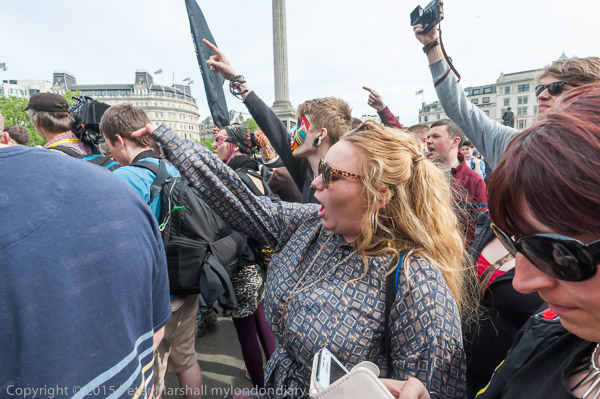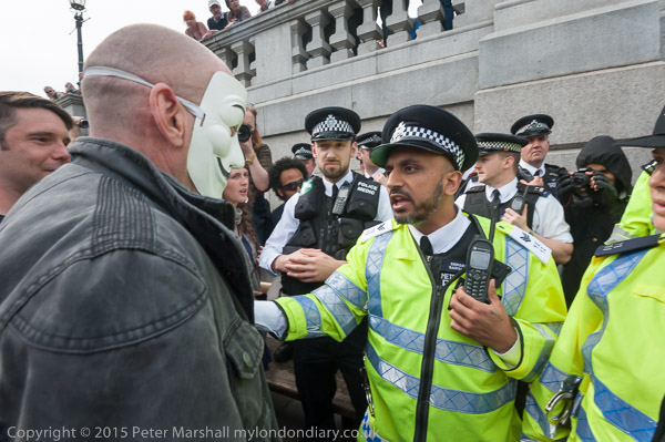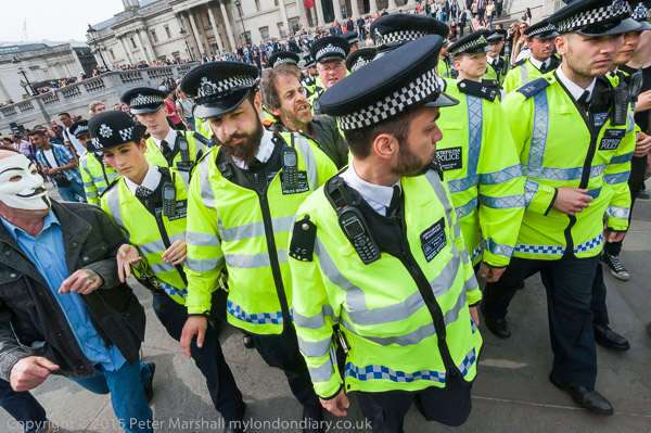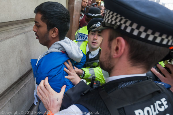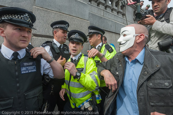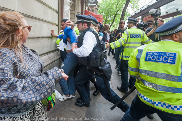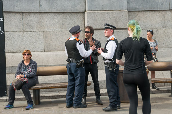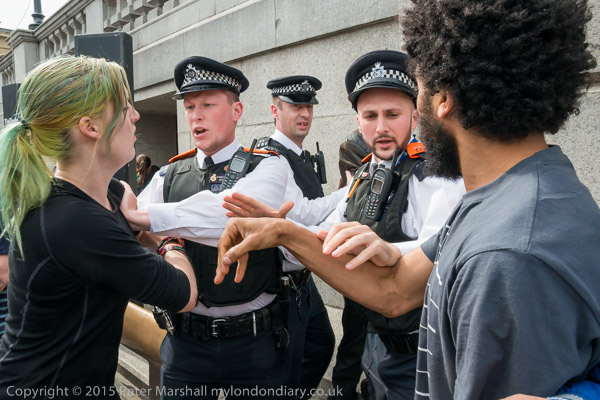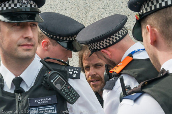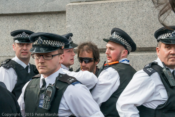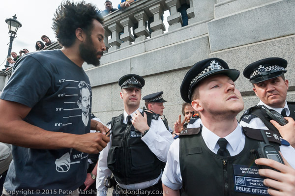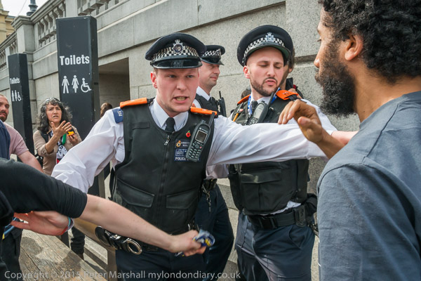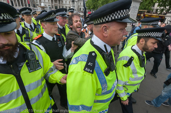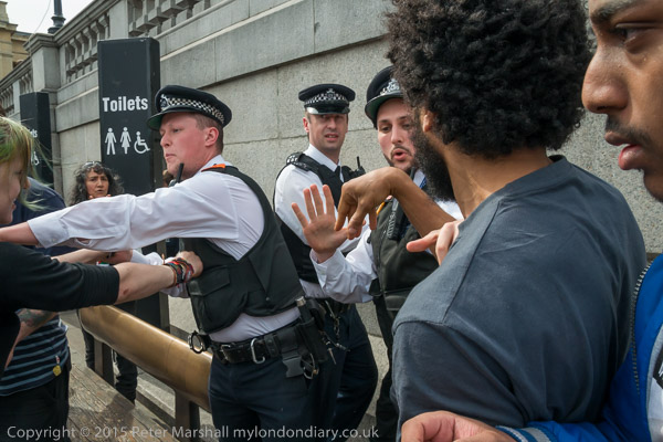 they took him to some waiting vans in Northumberland Ave. Police pushed a young man on the pavement