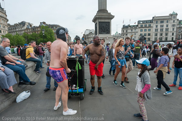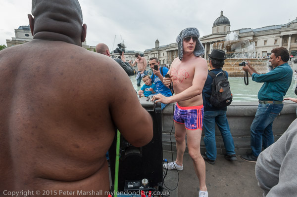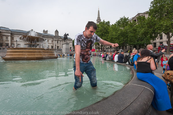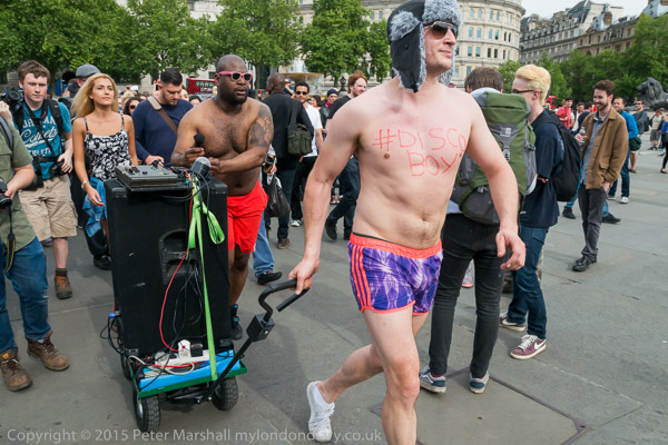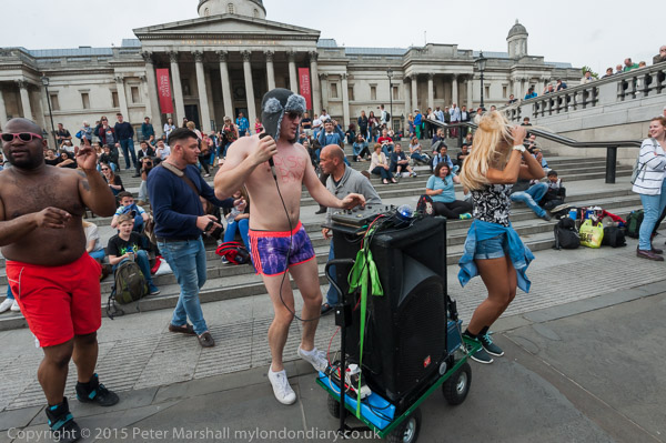 Loud disco music came to Trafalgar Square - and one man jumped into the fountain to dance to it
