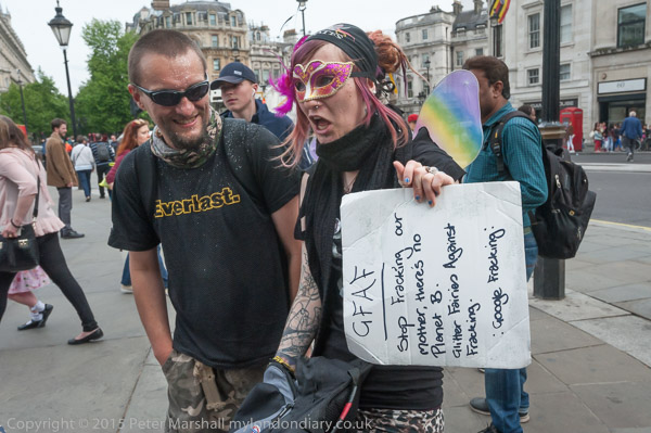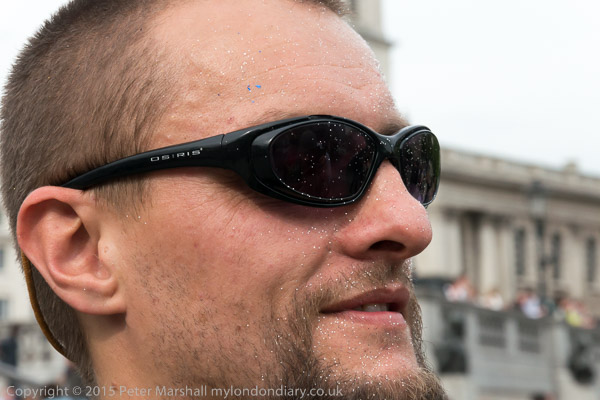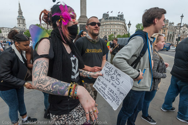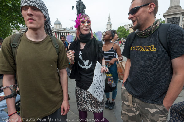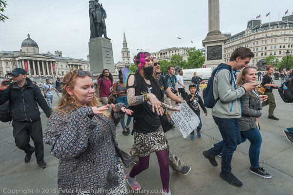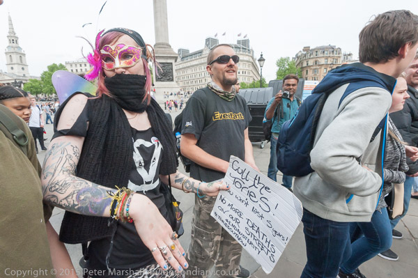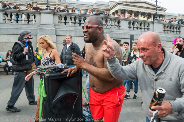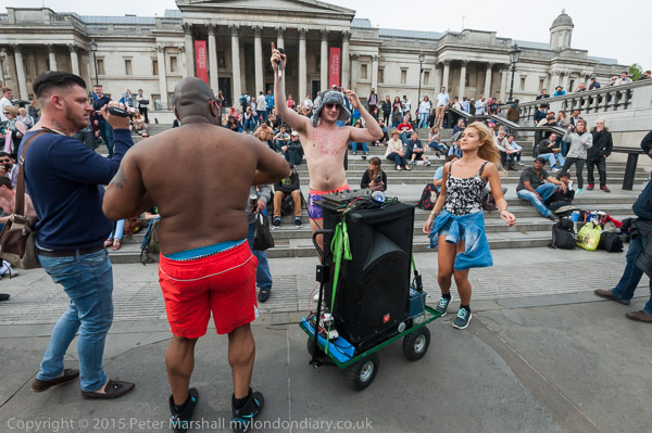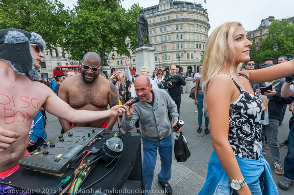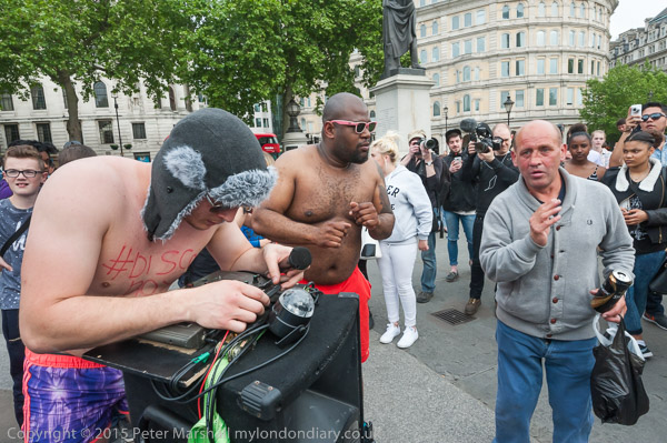 Lee Marshall from Kent who runs discos at local events brought a mobile rig to Trafalgar Square to join in the protests