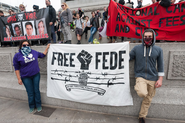 Free Fede banner in support of Federico Annibale, a student at SOAS in London was arrested in
